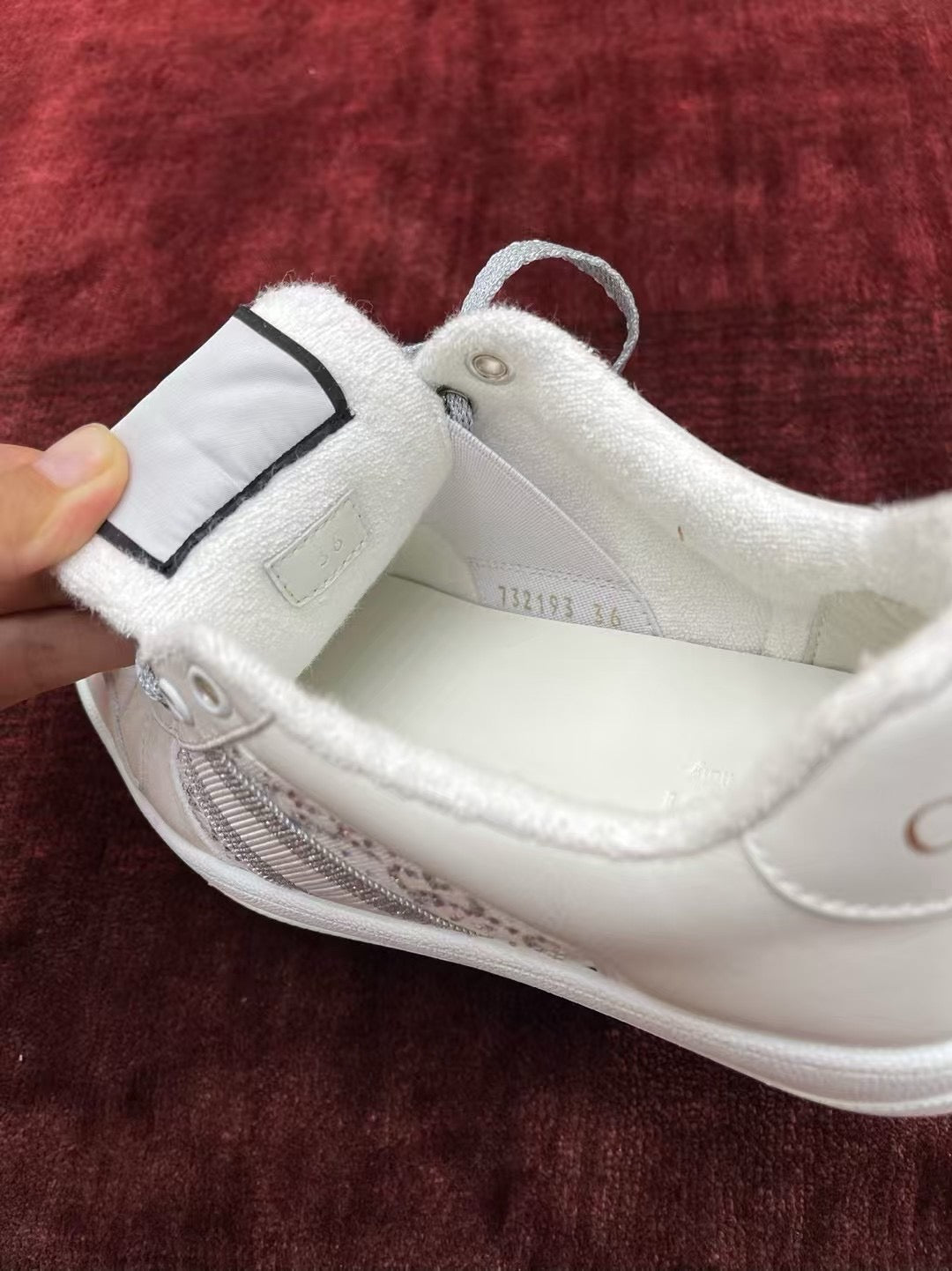 GG Screener Trainer Sneakers White Light Grey Cowhide Frabic 502168