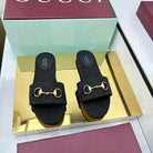 GG SLIDES IN BLACK WITH GOLD HARDWARE