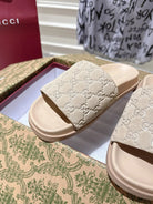 GG SLIDES IN NUDE BEIGE SUEDE WITH EMBOSSED LOGO STYLE 2