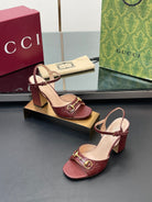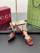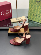 GG Women Horsebit Embossed High Heel Sandal Open Toe Burgundy Sheepskin 149227