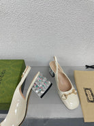 GG WOMEN'S HORSEBIT SLINGBACK IN WHITE CALFSKIN WITH RHINSTONES