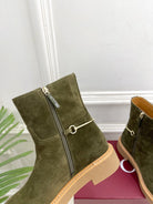 Gucci 25π¬π¬ horsebit ankle boots olive green suede 435378