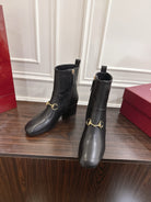 Gucci Horsebit Chunky Heel Ankle Boots Black Cowhide 490560