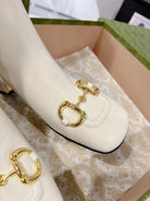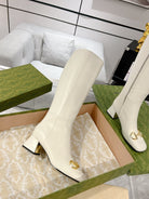 Gucci Horsebit Square Toe Mid-heeled Ankle High Boots White Cowhide 490538