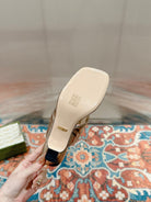 HIGH THONG MULE 55MM IN LIGHT GOLD CALFSKIN WITH GOLD HARDWARE