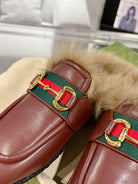 HORSEBIT MULE WITH WEB IN WINE RED CALFSKIN MIX MINK FUR