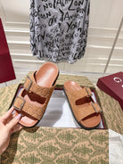 SANDALS IN BURNT ORANGE SUEDE EMBOSSED LOGO SILVER HARDWARE