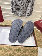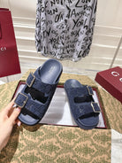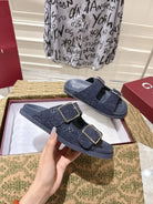 SANDALS IN NAVY BLUE SUEDE EMBOSSED LOGO SILVER HARDWARE