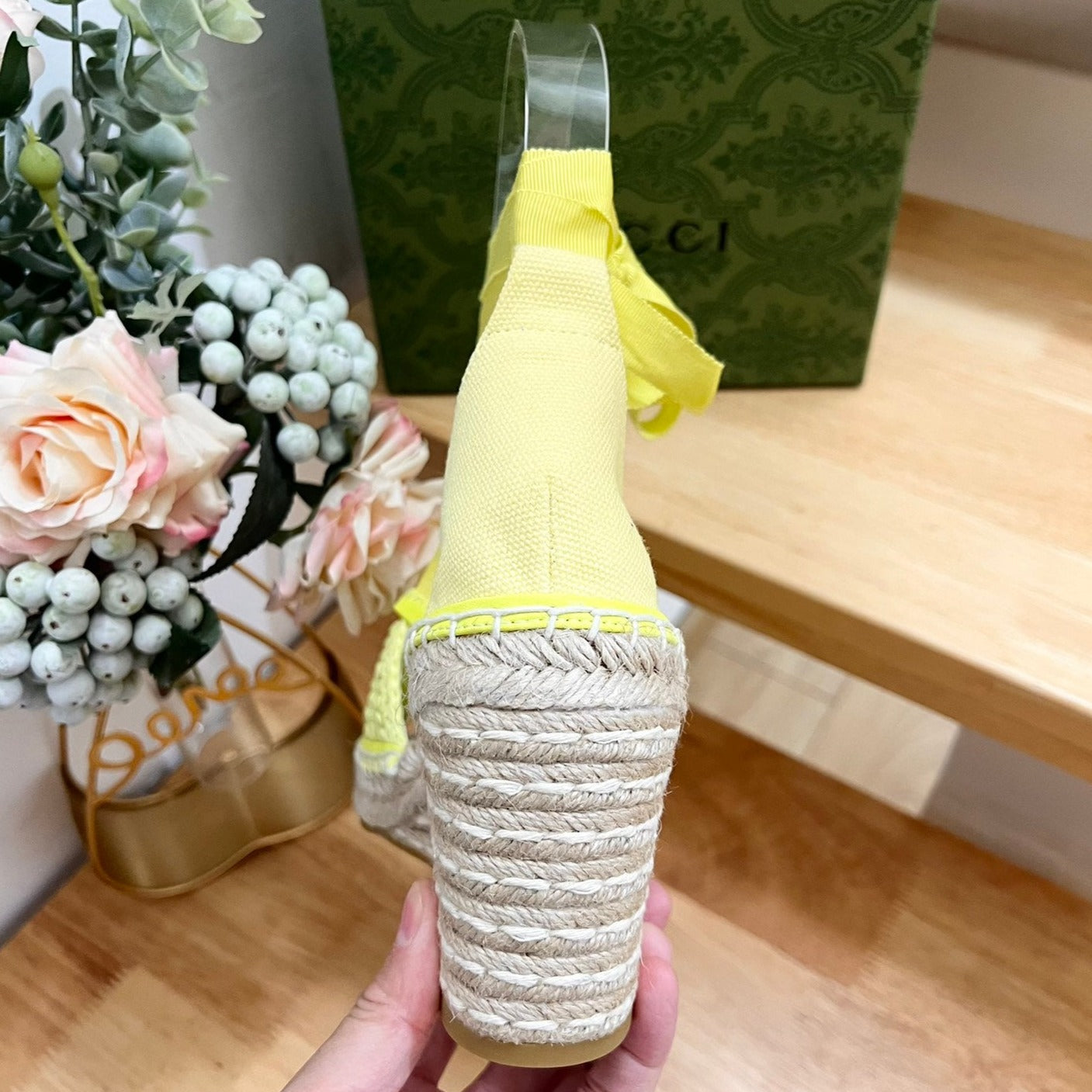 GG Crochet platform Espadrilles Blush Amber Yellow