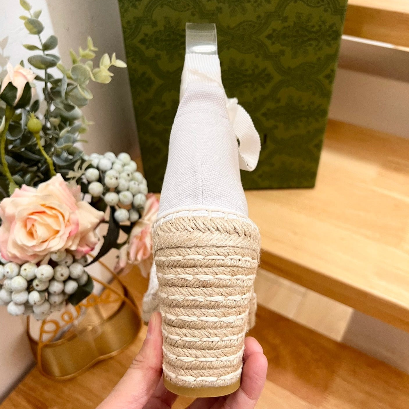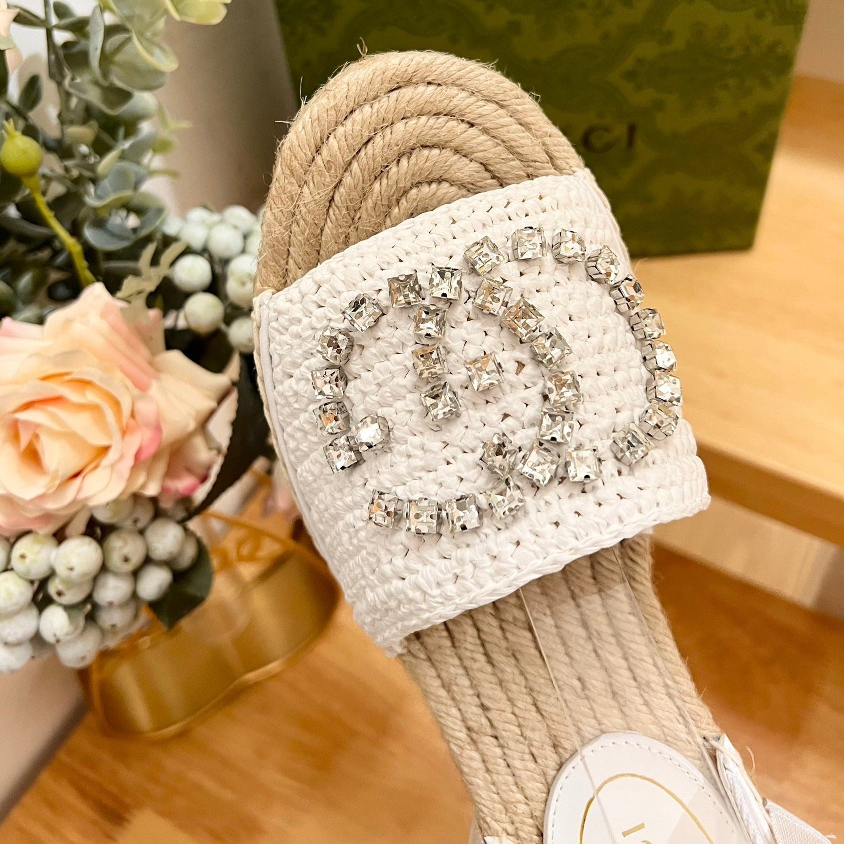 GG Crochet platform Espadrilles White