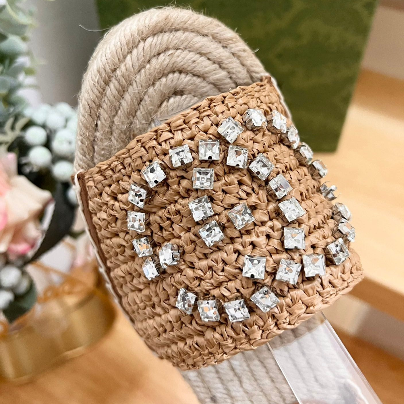 GG Crochet platform Espadrilles Jade Green