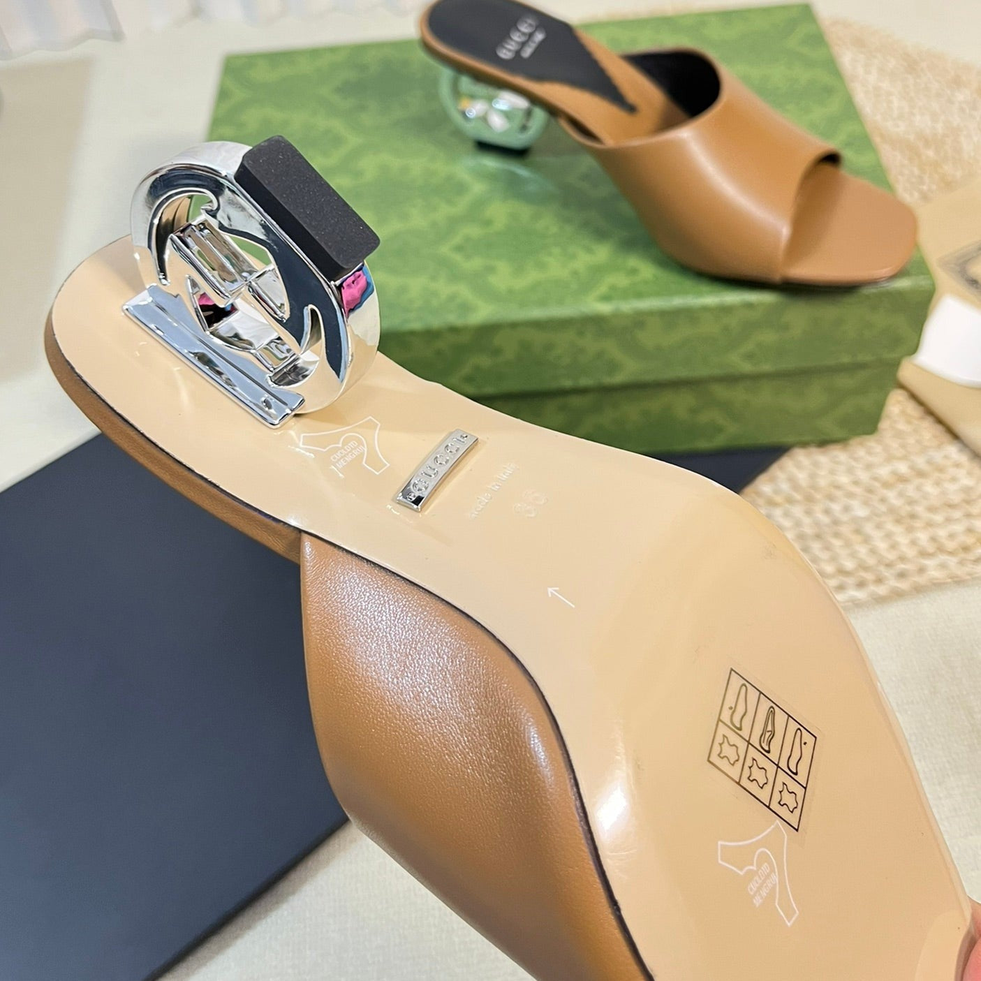 GG Women High Sandal Shoes Brown Caramel