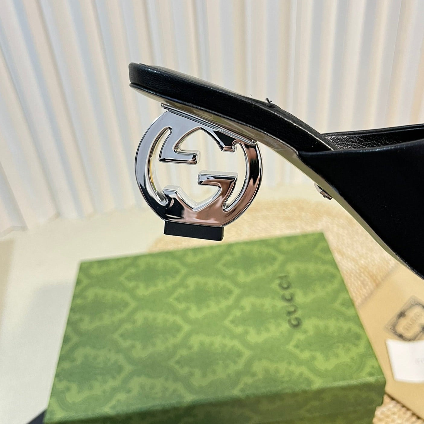 GG Interlocking double G hollow slippers Black