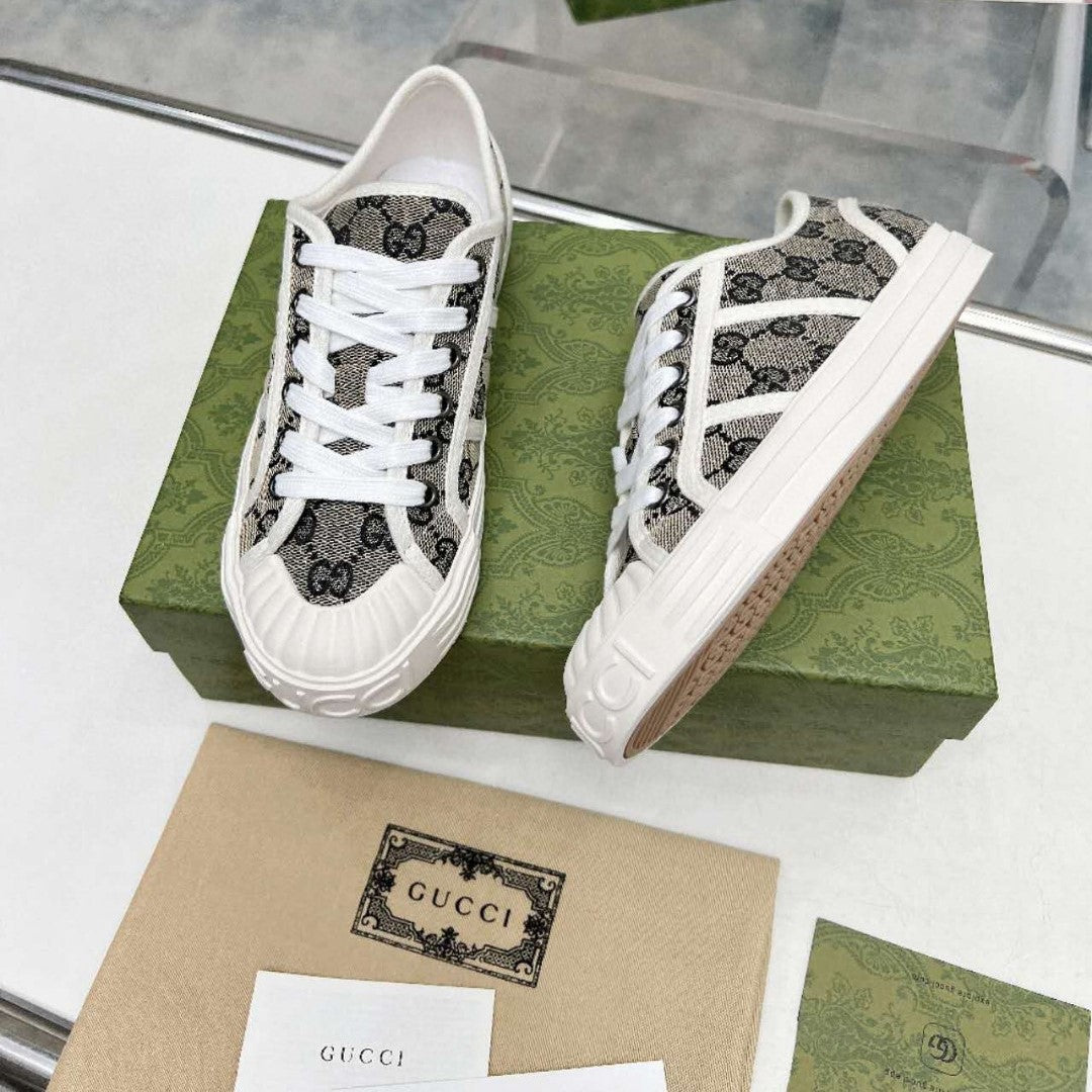GG Screener Trainer Sneakers White Light Grey Cowhide Frabic 502168