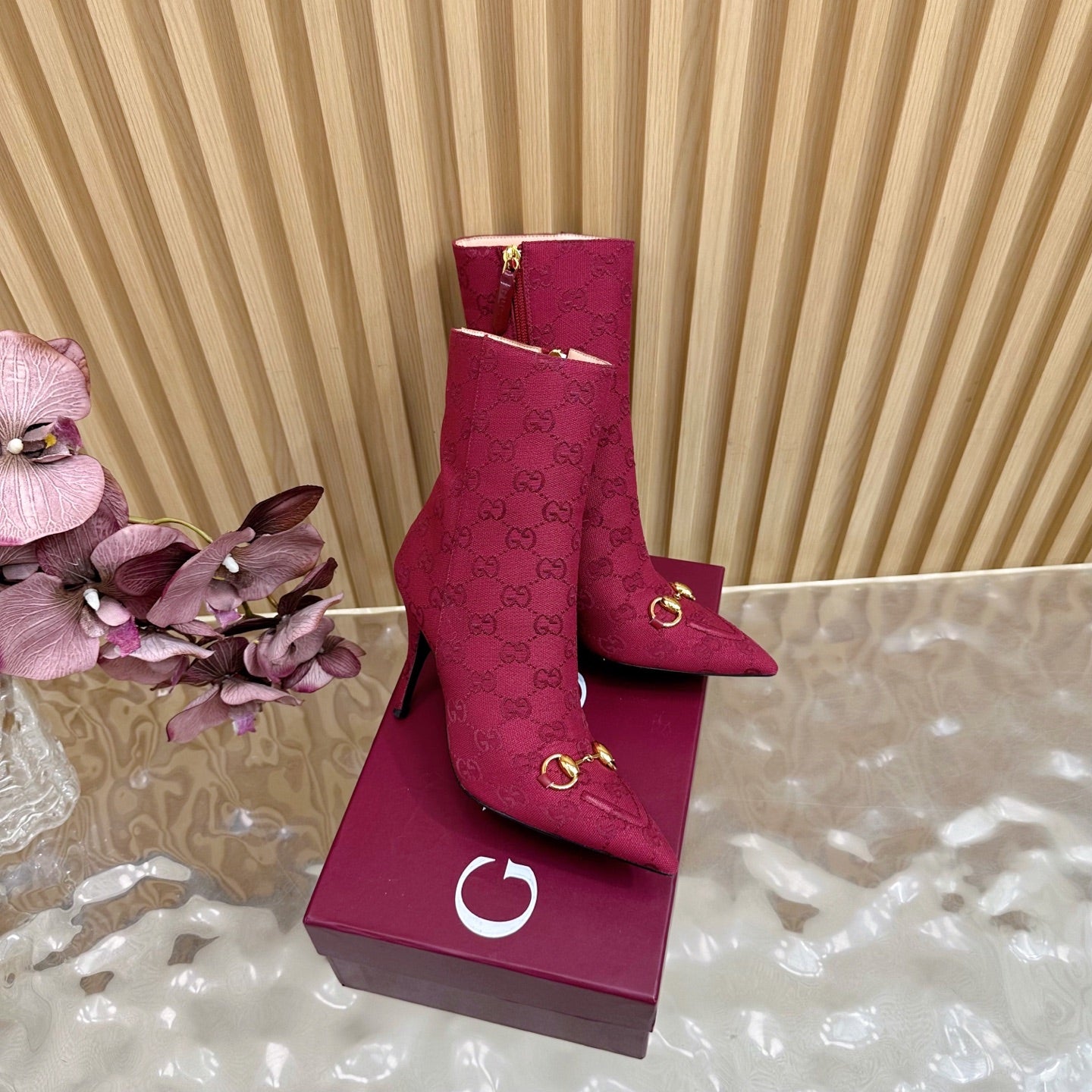 Gucci 2025 Thick-heeled Square-toed Ankle Boots Red Sheepskin 498068