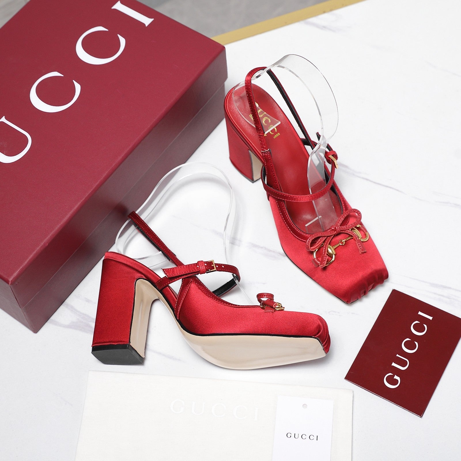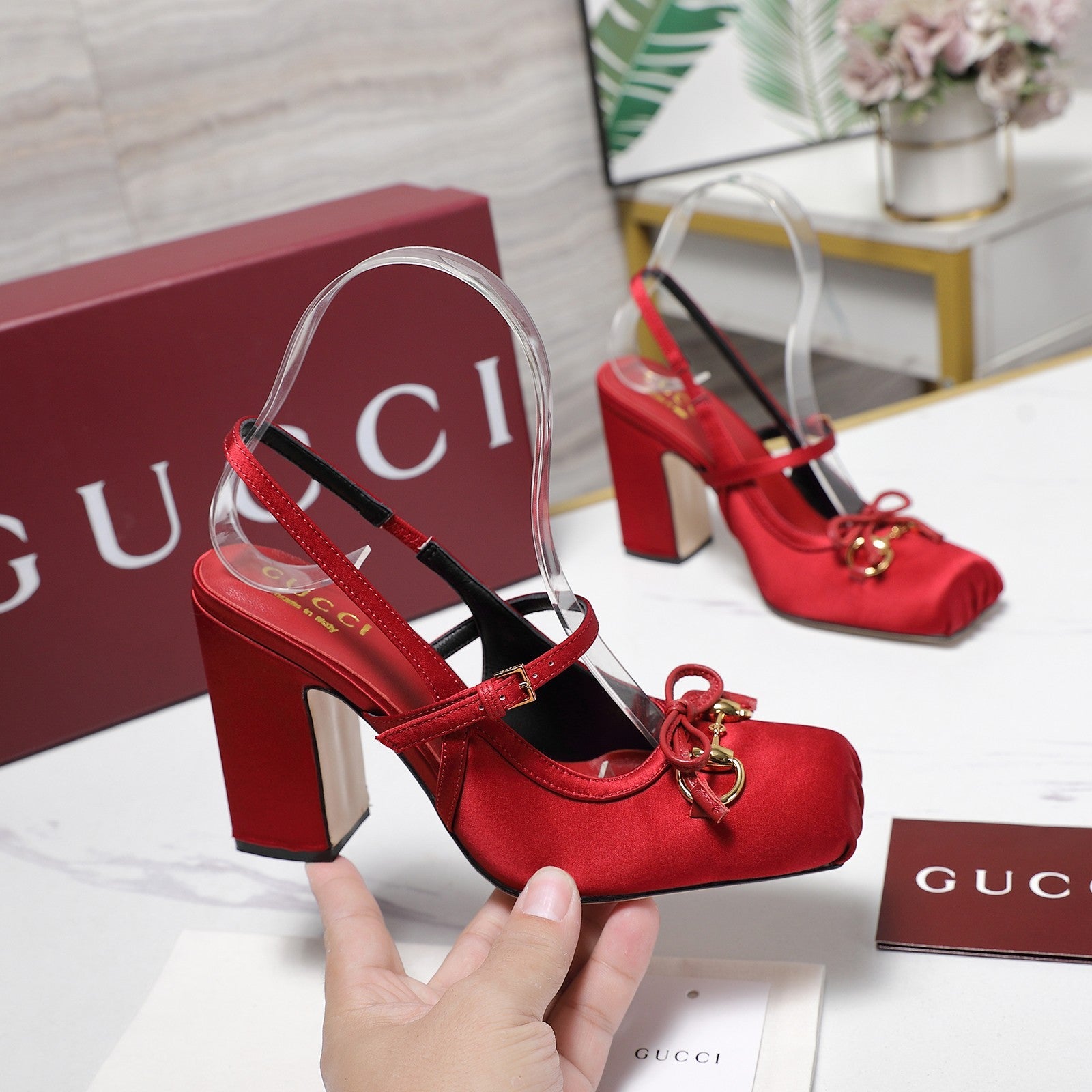 Gucci Horsebit Slingback Pumps 7CM Red Leather 504427