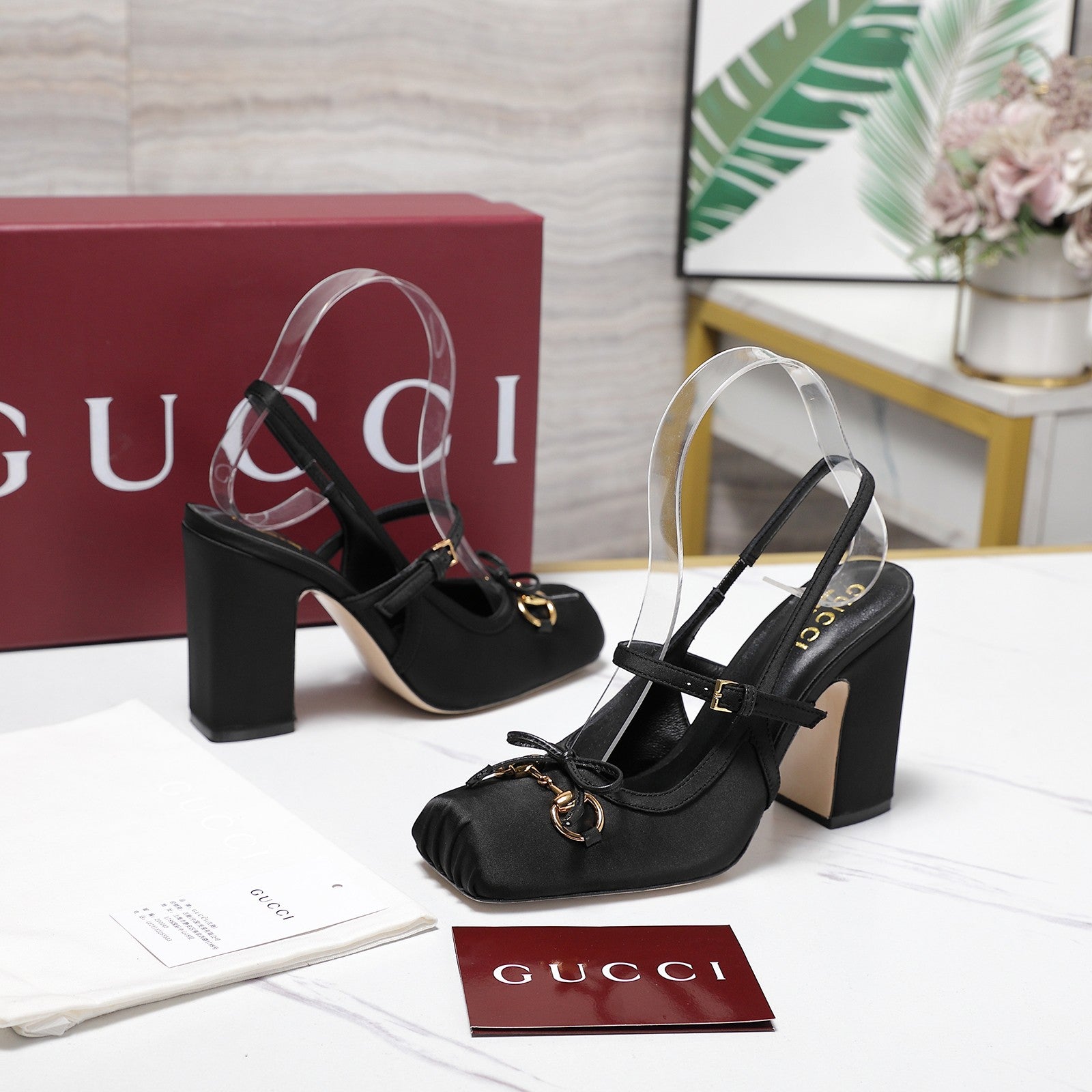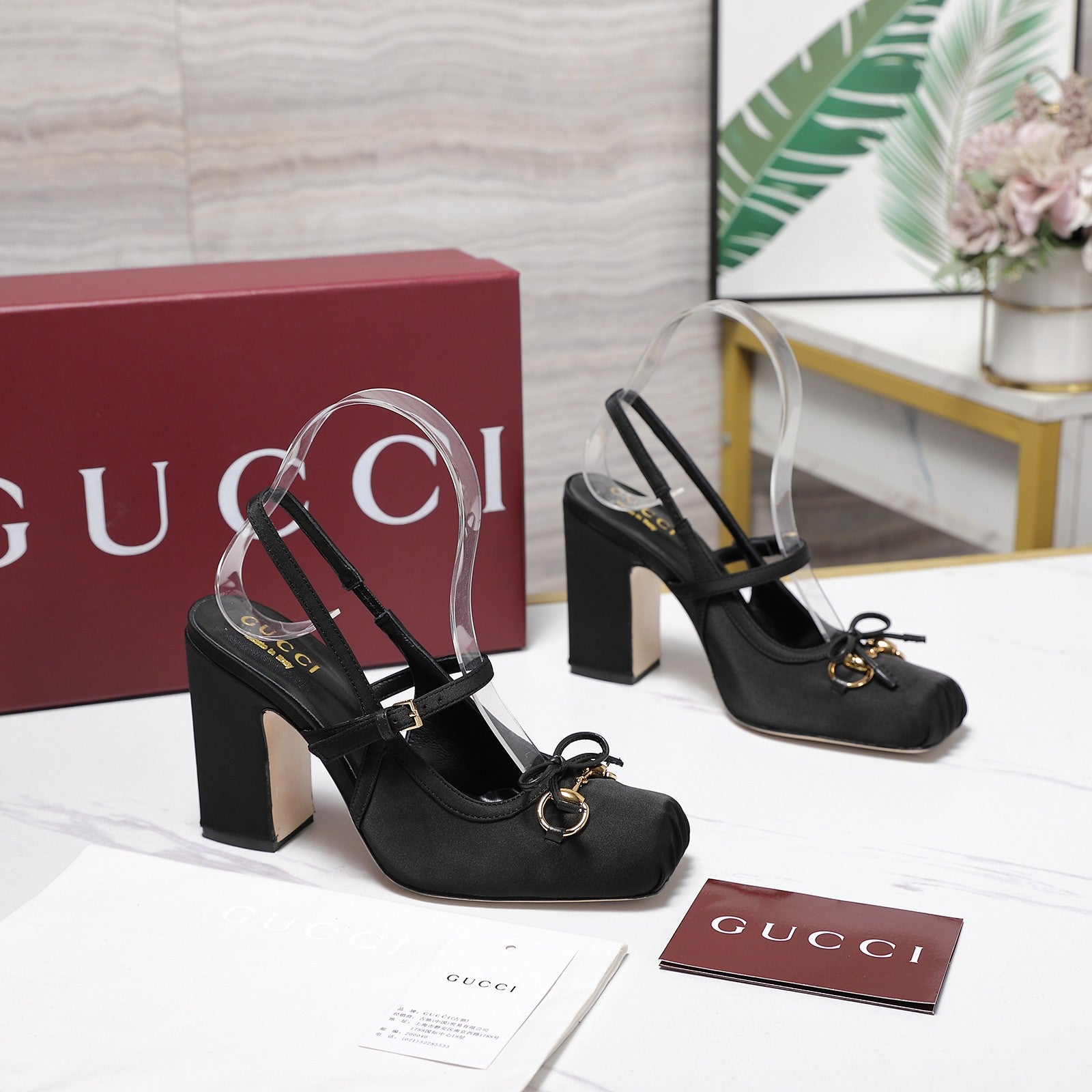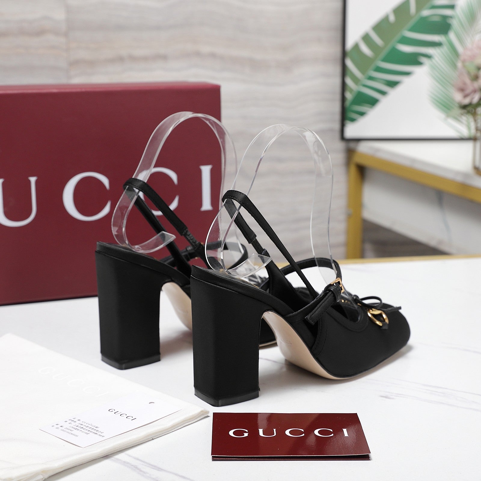 Gucci Horsebit Slingback Pumps 7CM Black Leather 504428