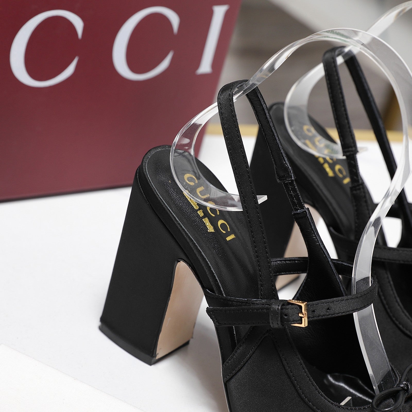 Gucci Horsebit Slingback Pumps Black Satin Fabric 504424