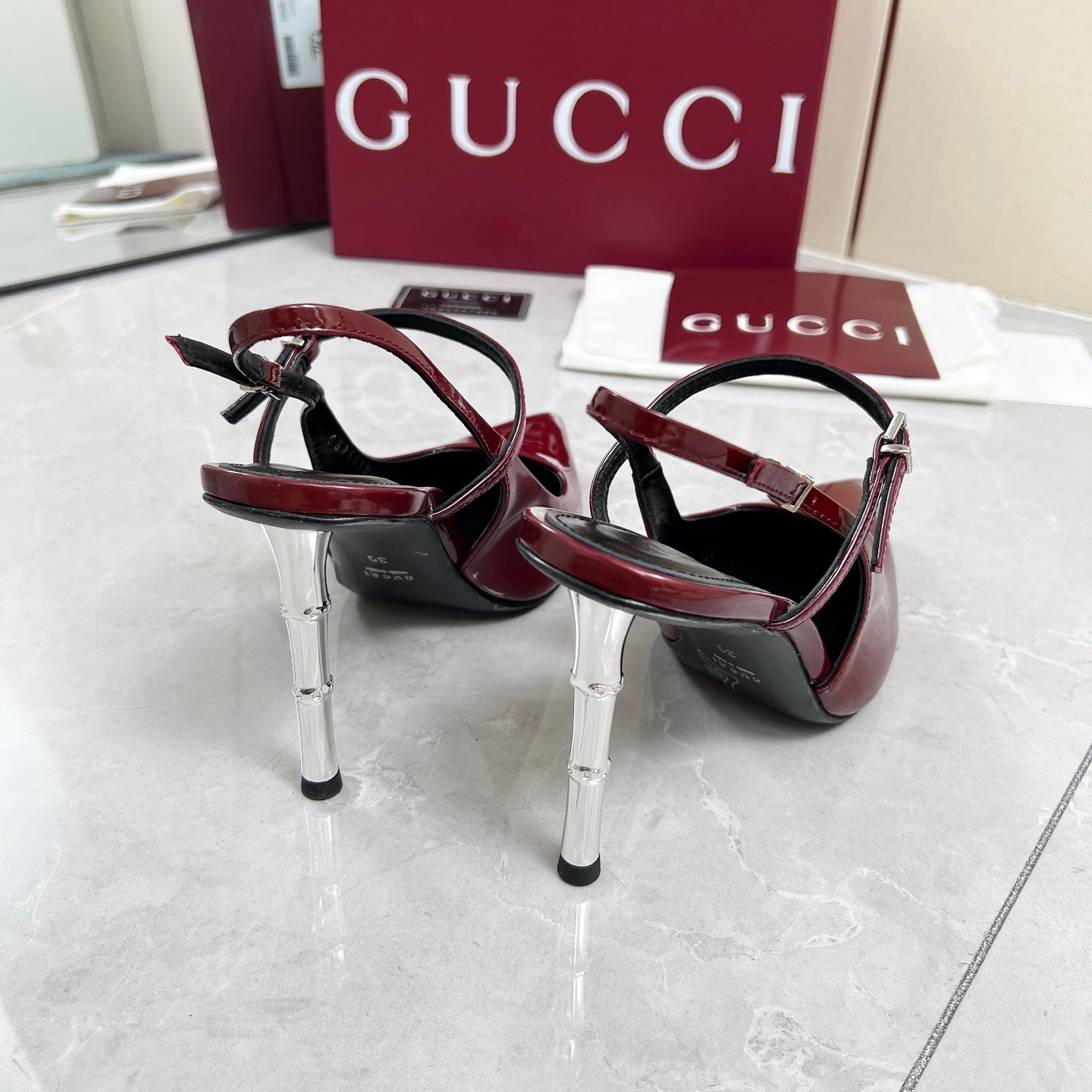GG 25Ss Crocodile Pattern Pointed Toe High Heels Burgundy Leather 511496