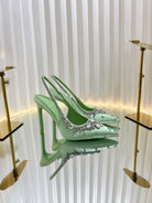 GC 2025 Crystal Embellished High Heels Slingbacks Green Silk Sheepskin 294525
