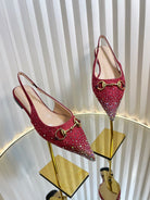 GC Crystal Horsebit Slingback 10mm Red Canvas lambskin 294612