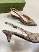 GC Horsebit Slingback Pump 50mm Beige mix Brown Canvas Sheepskin 294560