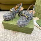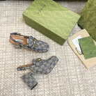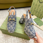 GG HIGH - HEEL SLINGBACK WITH HORSEBIT LIGHT GRAY CALFSKIN