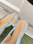 GG Horsebit Slingback 85MM Beige Cloud Blue Monogram Canvas Point Toe Crystal-Embellished
