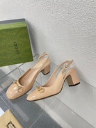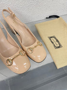 GG WOMEN'S HORSEBIT SLINGBACK 65MM IN TAN BEIGE CALFSKIN