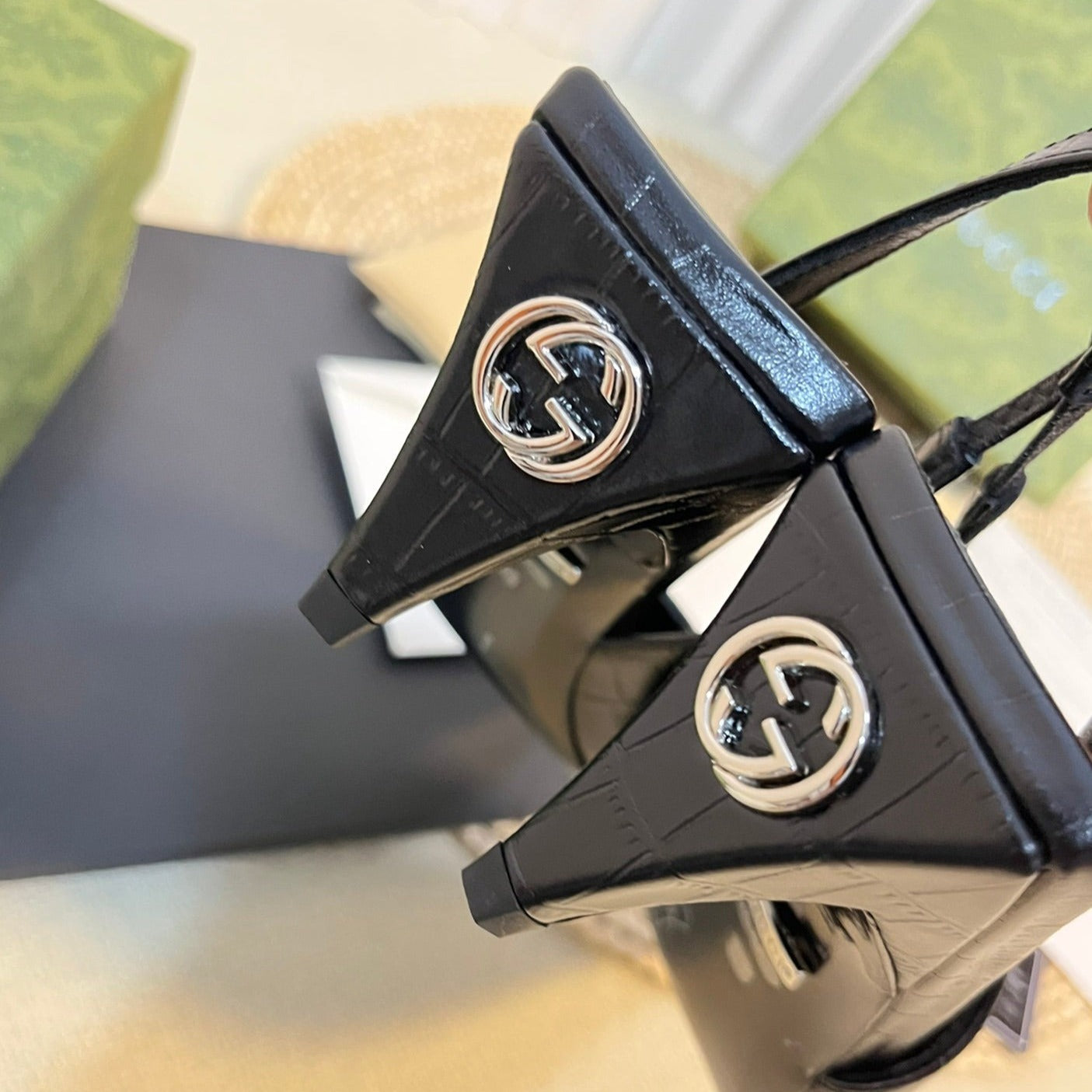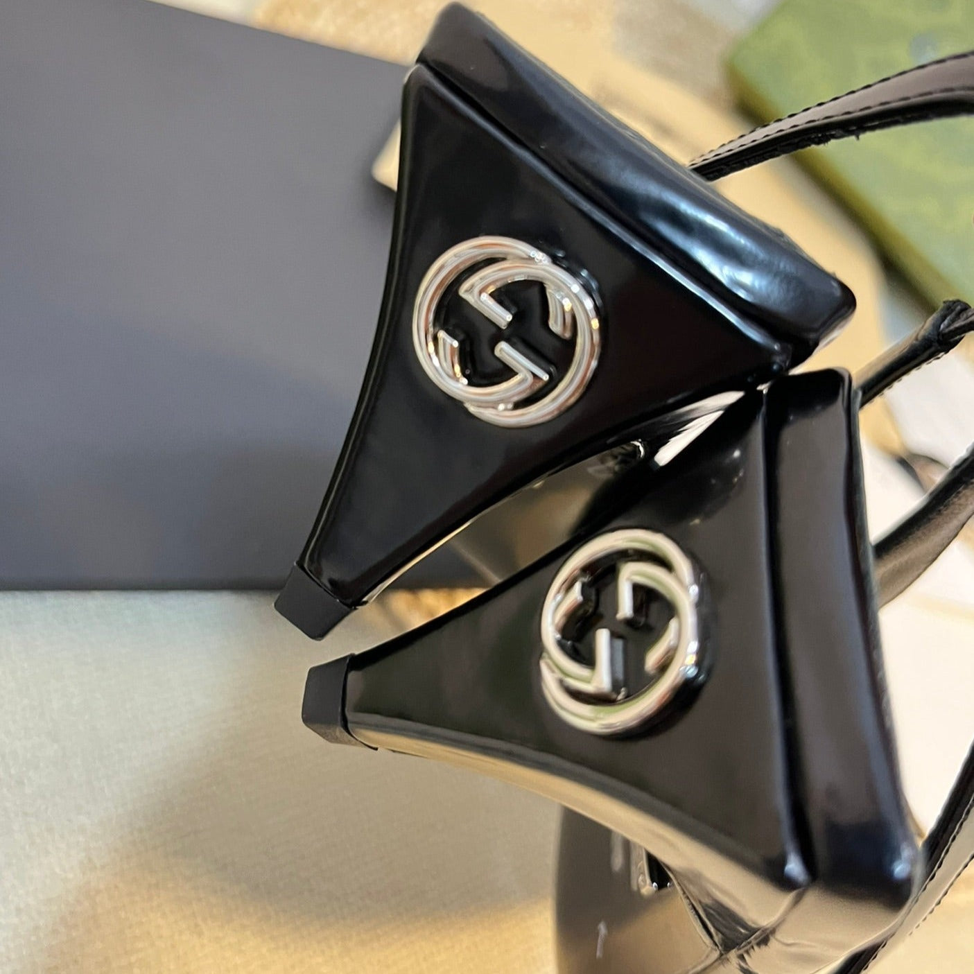 GG HIGH SLINGBACK 10.5 CM IN BLACK GLOSSY CALFSKIN