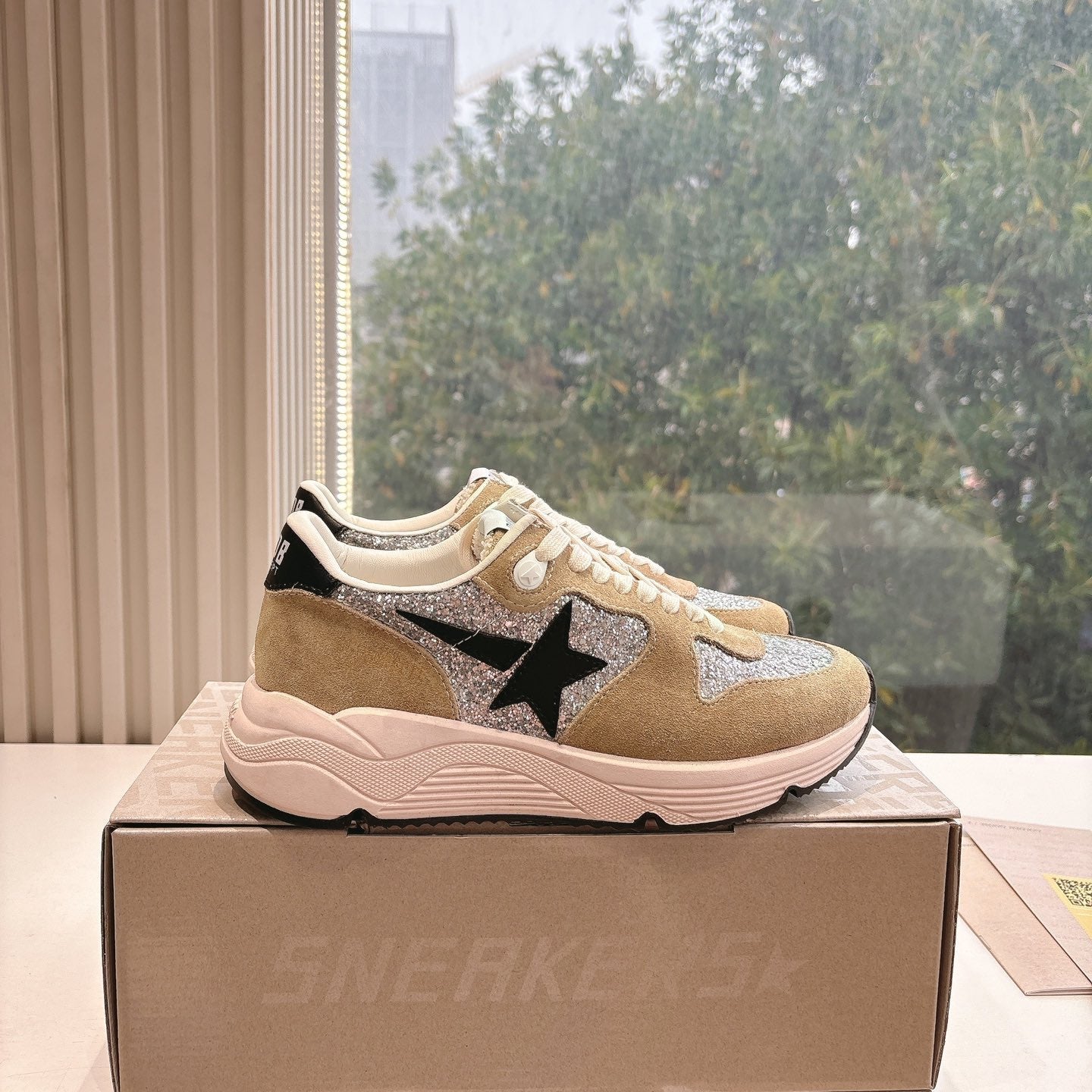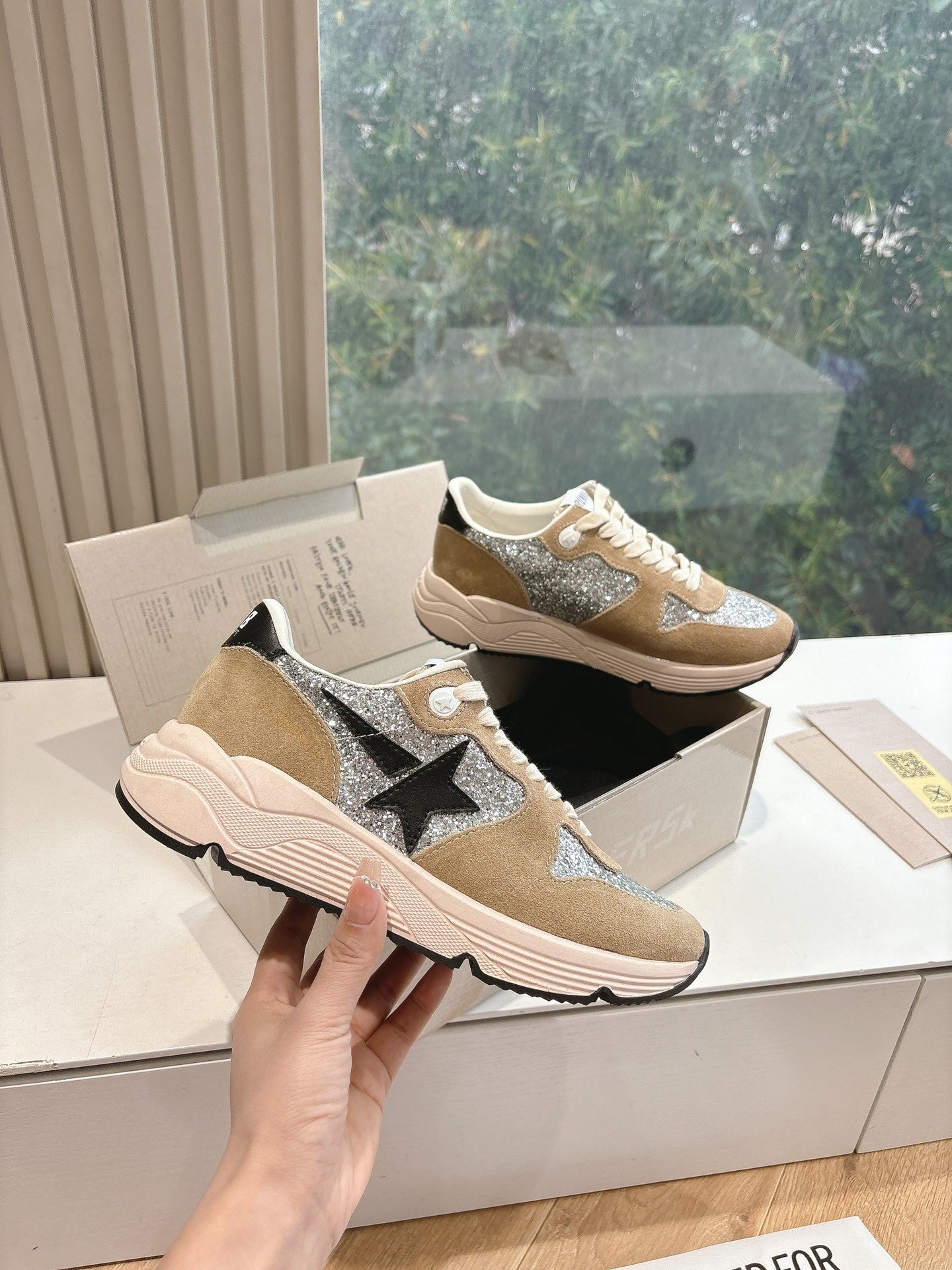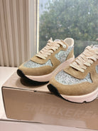 RUNNING SOLE SNEAKERS IN SILVER GLITTER AND PECAN PIE SUEDE BLACK CALFSKIN STAR