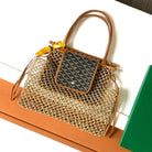 ALIGRE BAG 34 IN BROWN WOVEN RAFFIA AND CALFSKIN