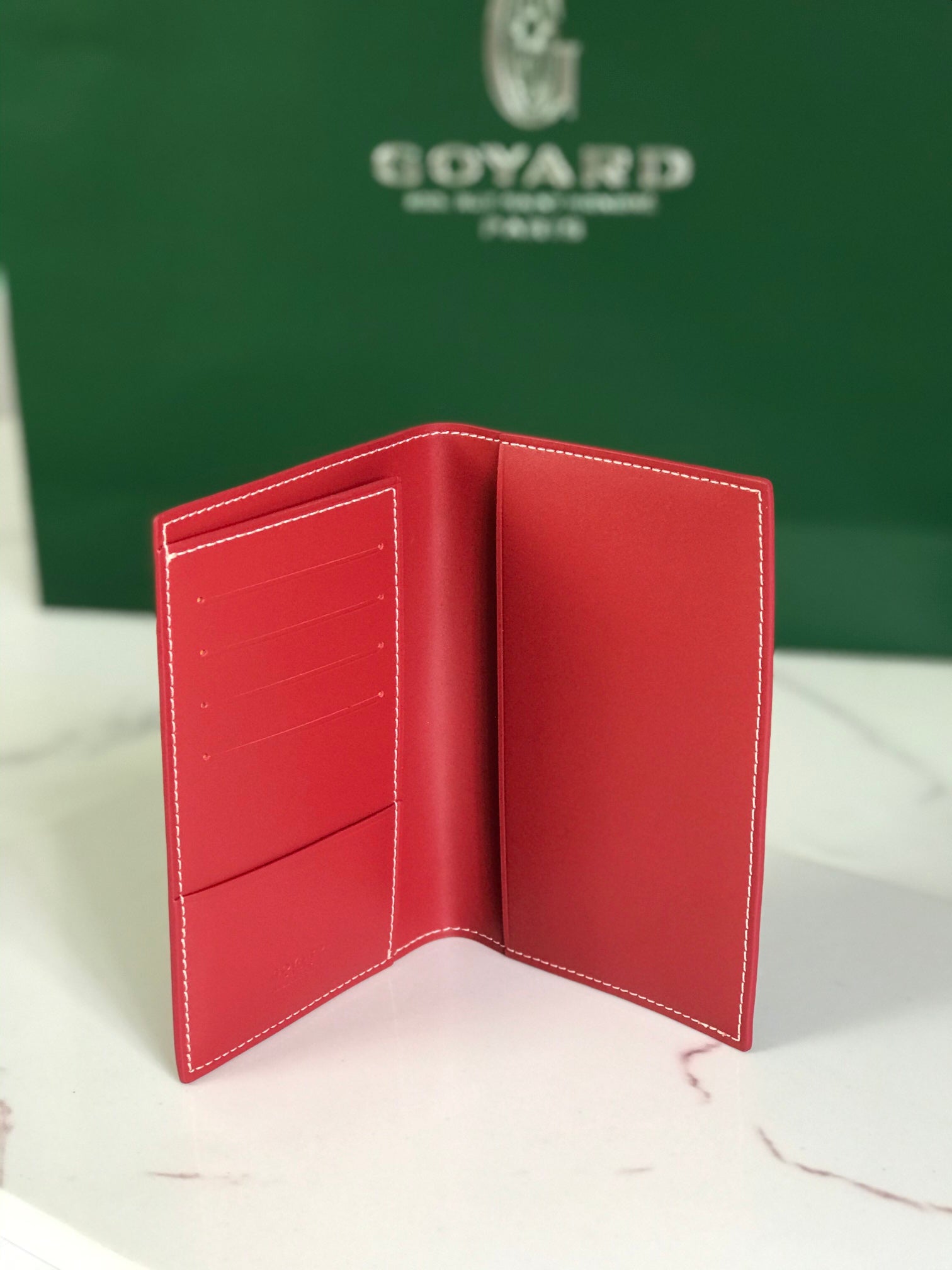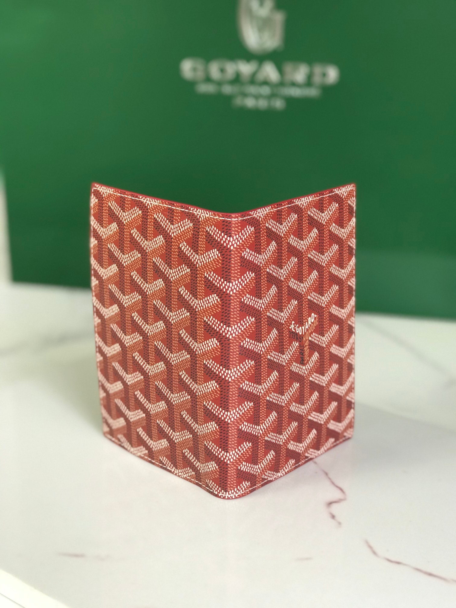 Goyard Grenelle Passport Cover 10cm Red Canvas & Cafskin