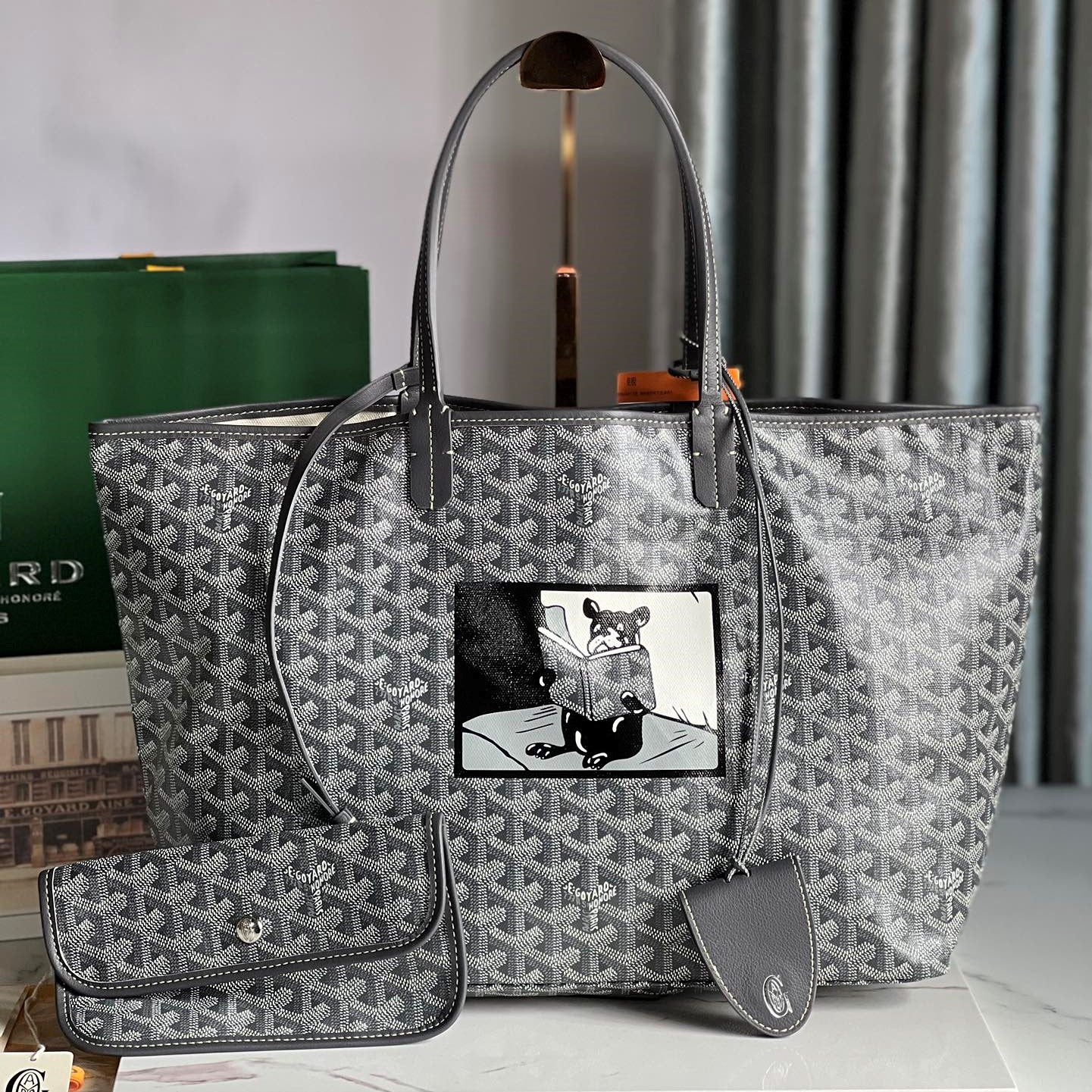 Goyard Hulot Saint Louis PM Bag 34cm Grey Canvas & Calfskin