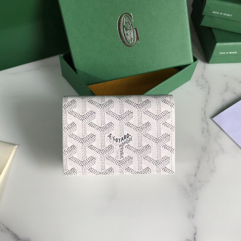 Goyard Malesherbes Card Wallet 10cm White Canvas & Calfskin