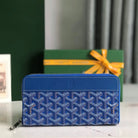 Goyard Matignon GM Wallet 20cm Blue Canvas & Calfskin
