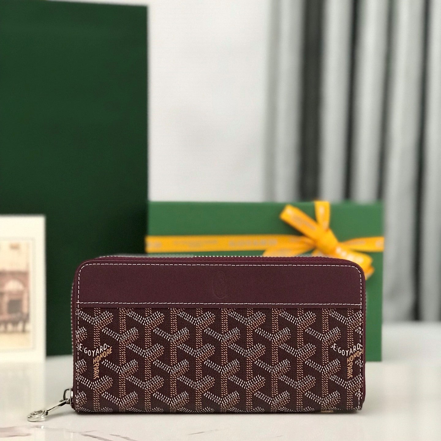 Goyard Matignon GM Wallet 20cm Burgundy Canvas & Calfskin