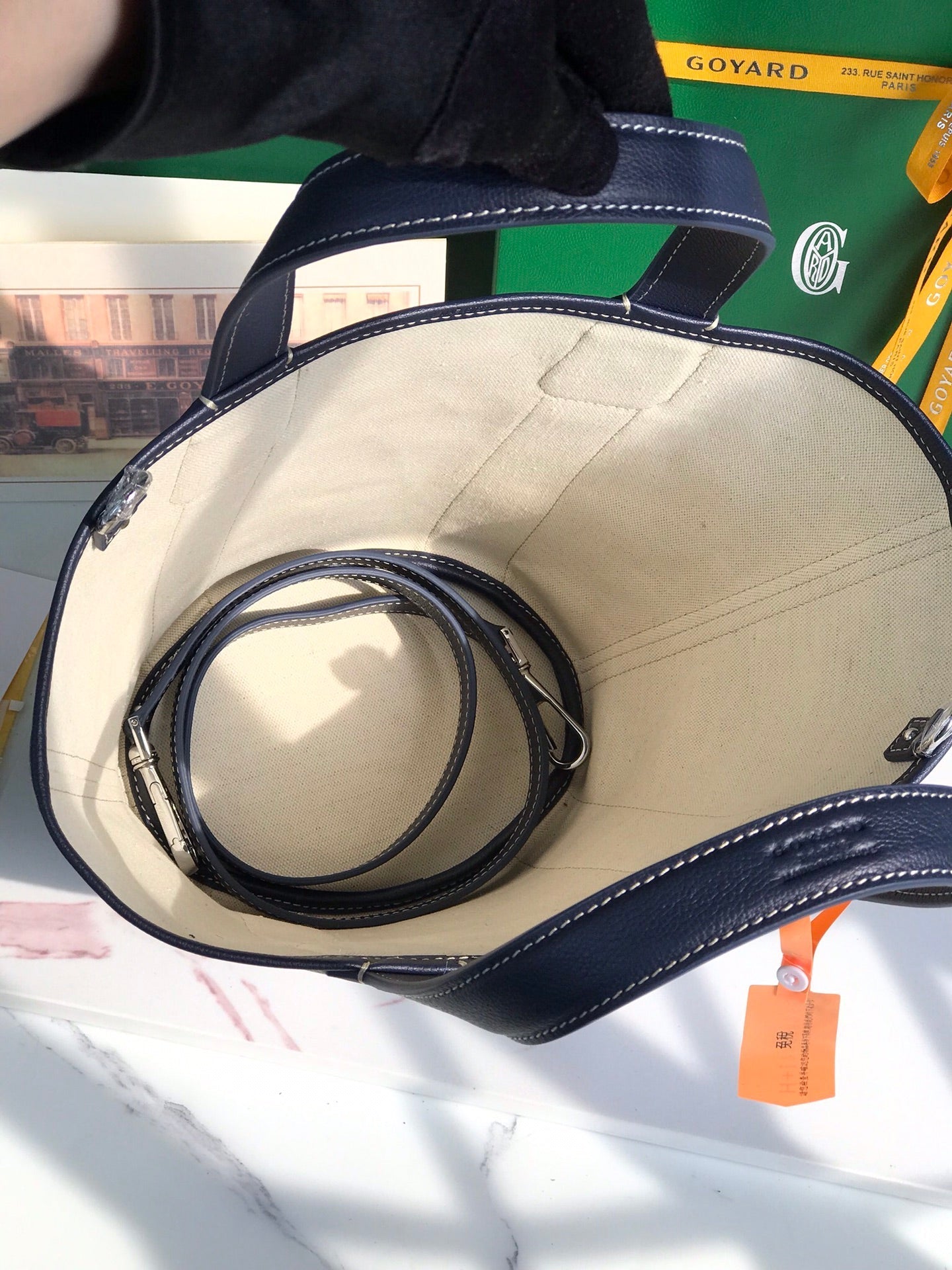 SMALL BELHARRA 24 IN NAVY BLUE GOYARDINE CANVAS AND LAMBSKIN