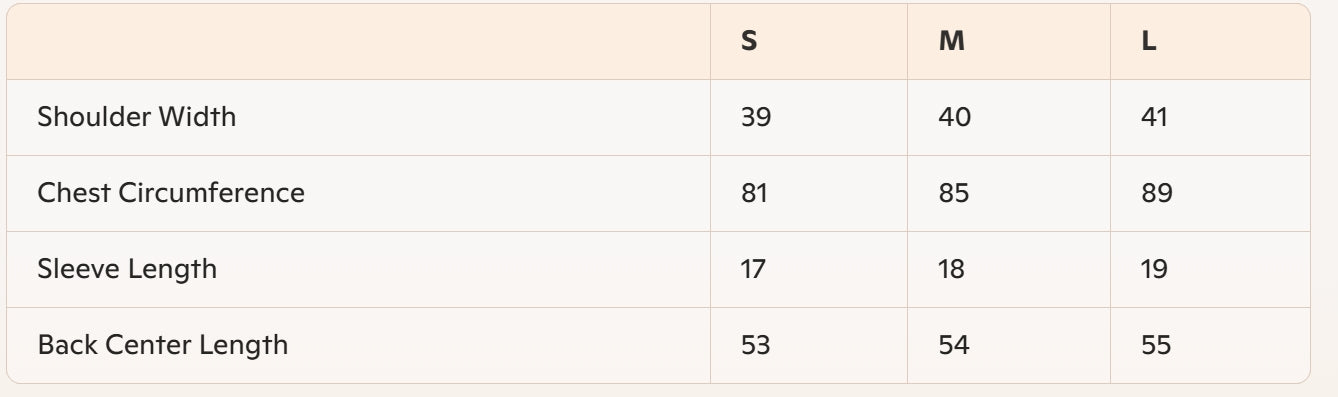 - Size: S, M, L