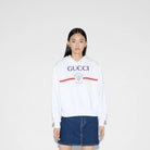 GG White Blue Printed Cotton Jersey Hooded Sweatshirt
