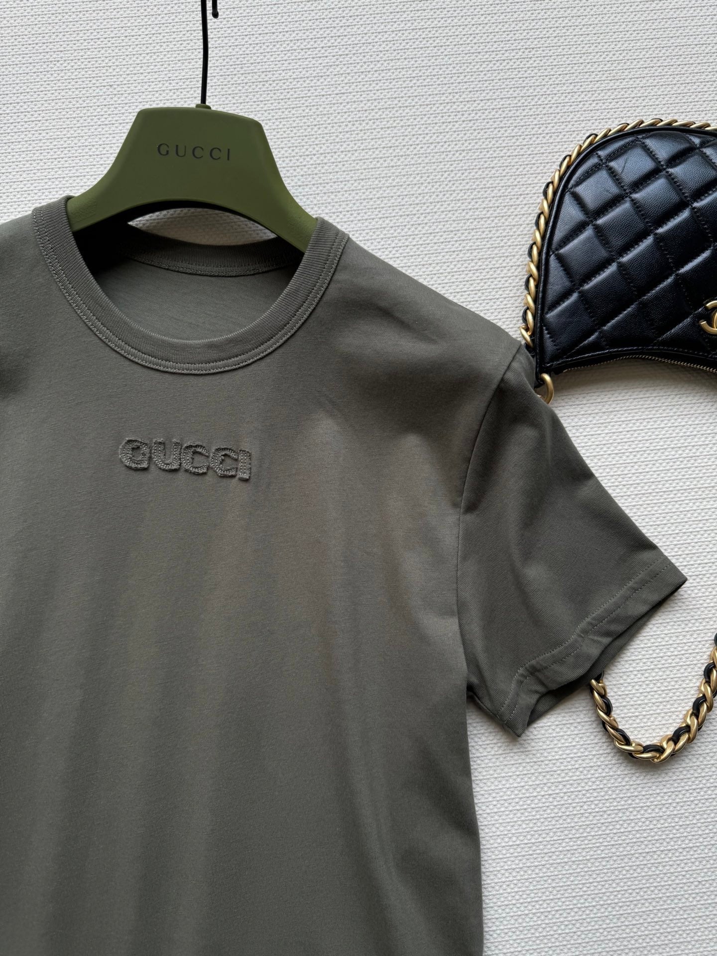 Gucci 2025 Embroidered Jersey T-shirt Dark Green Cotton