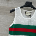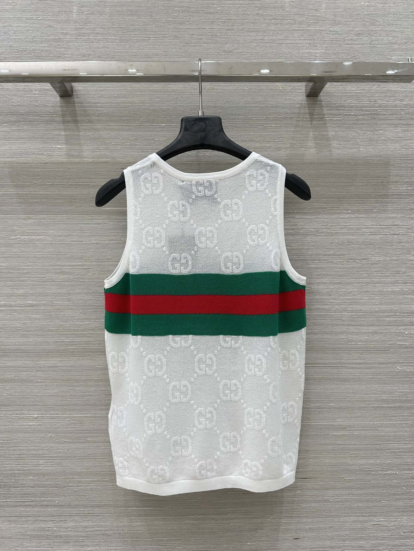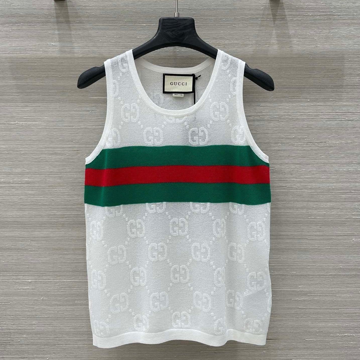 Gucci 25 Embroidered Jacquard Mesh Vest Top White Tencel