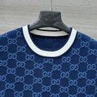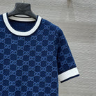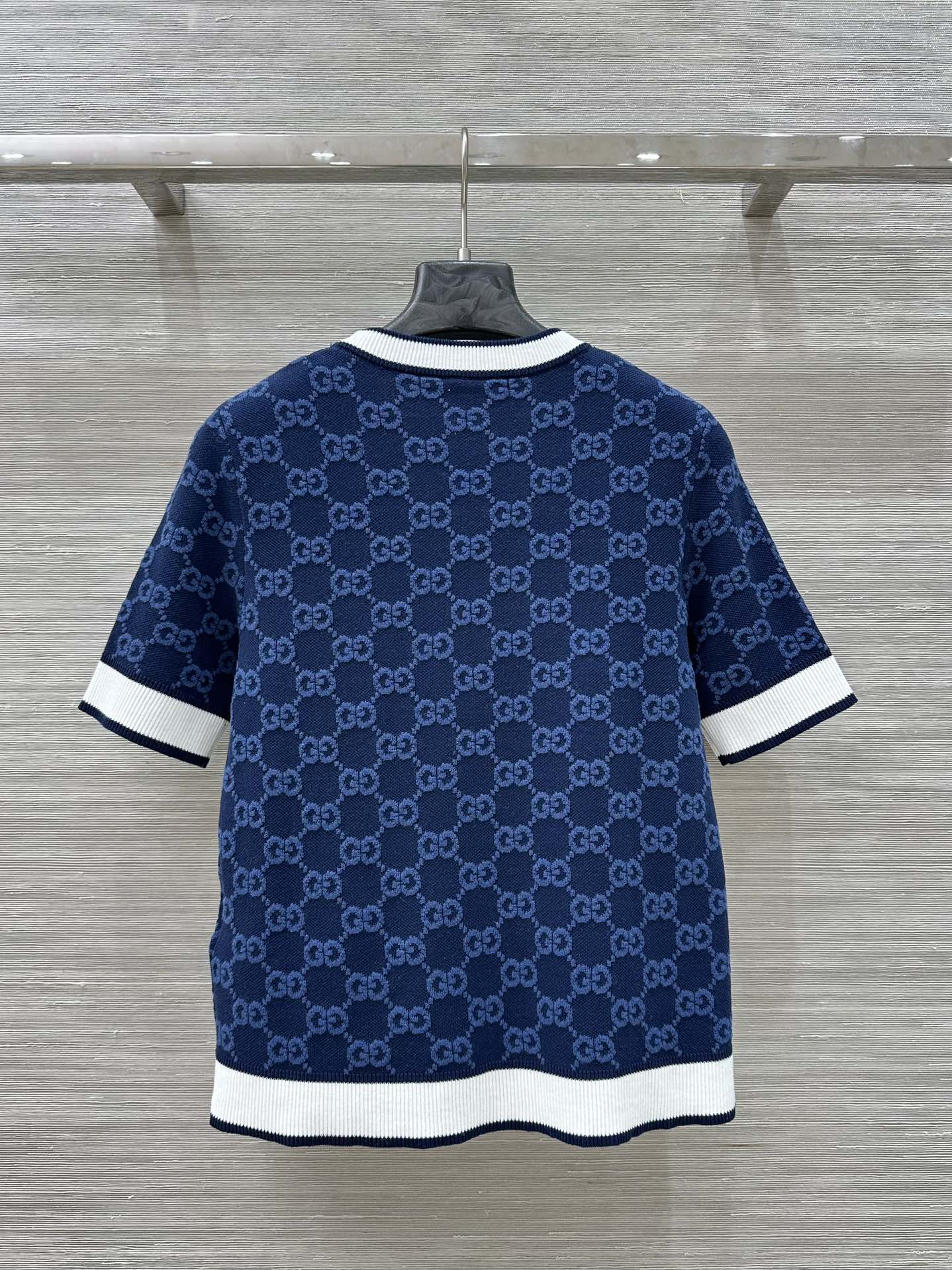 Gucci 25 Knitted Round Neck Short-sleeved Top Dark Blue Wool