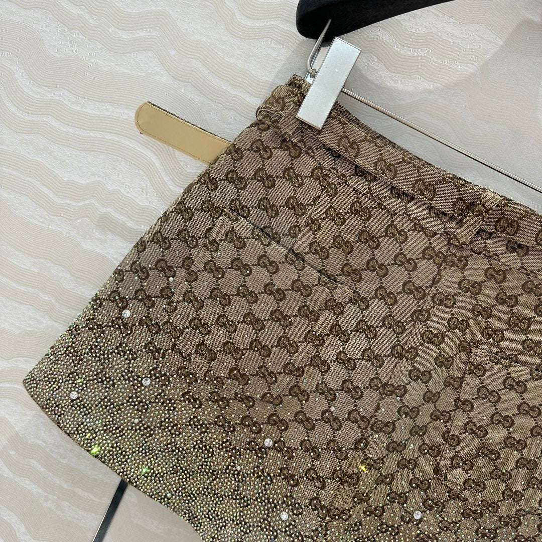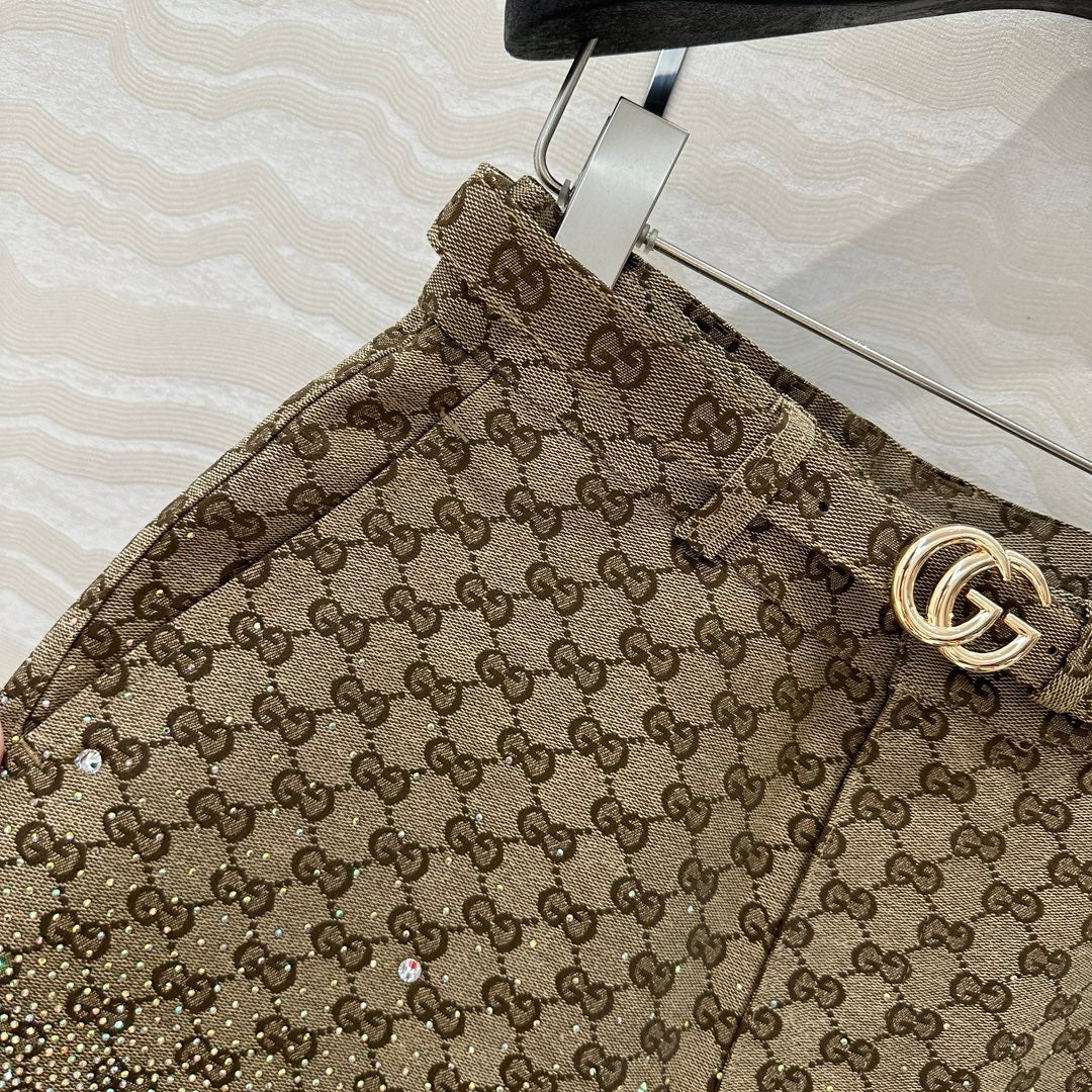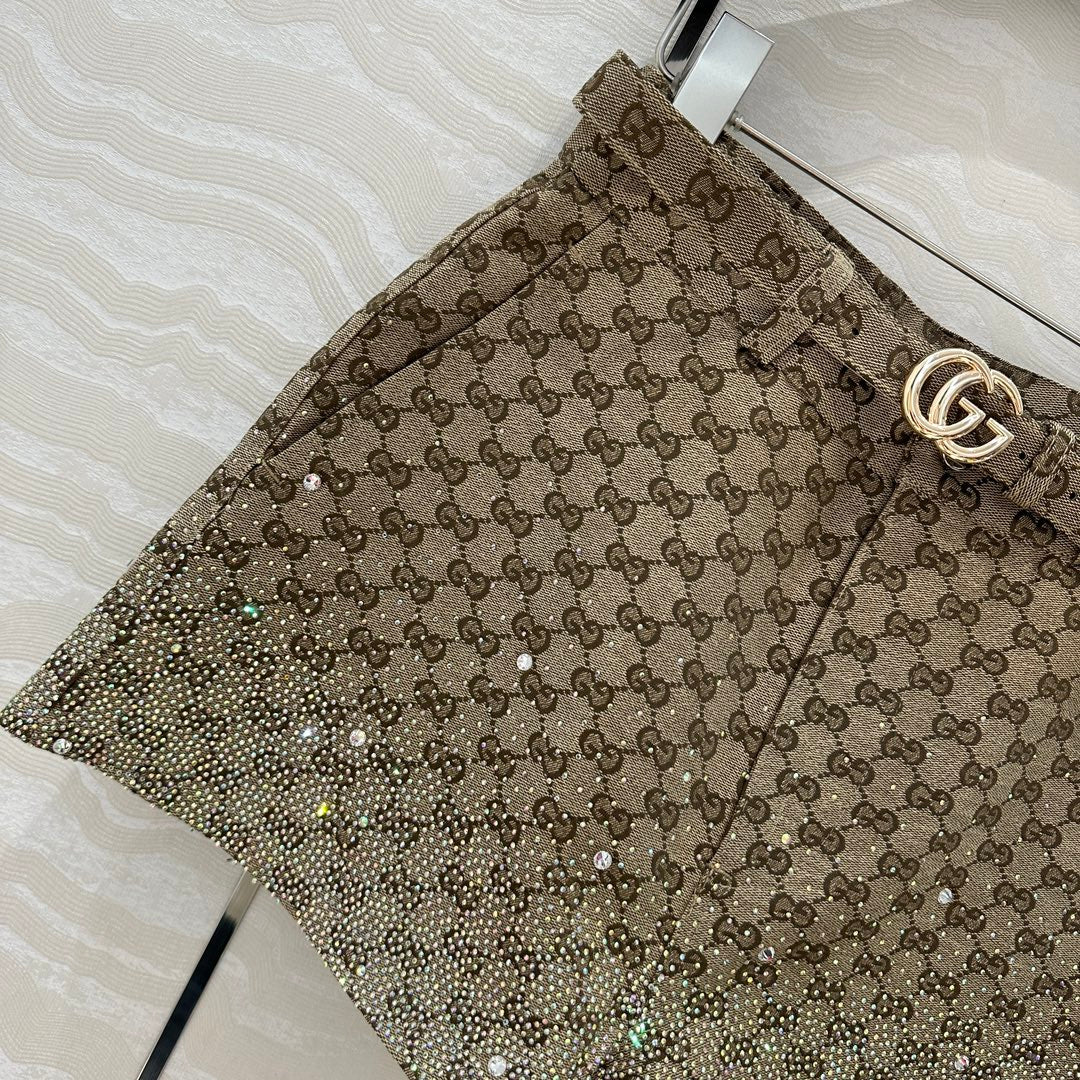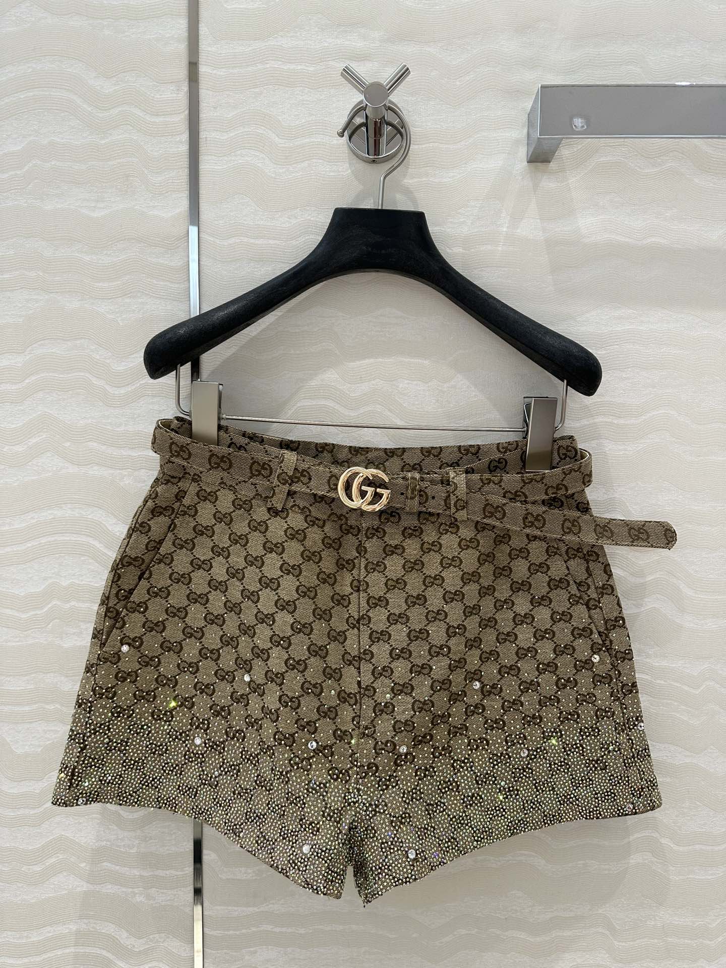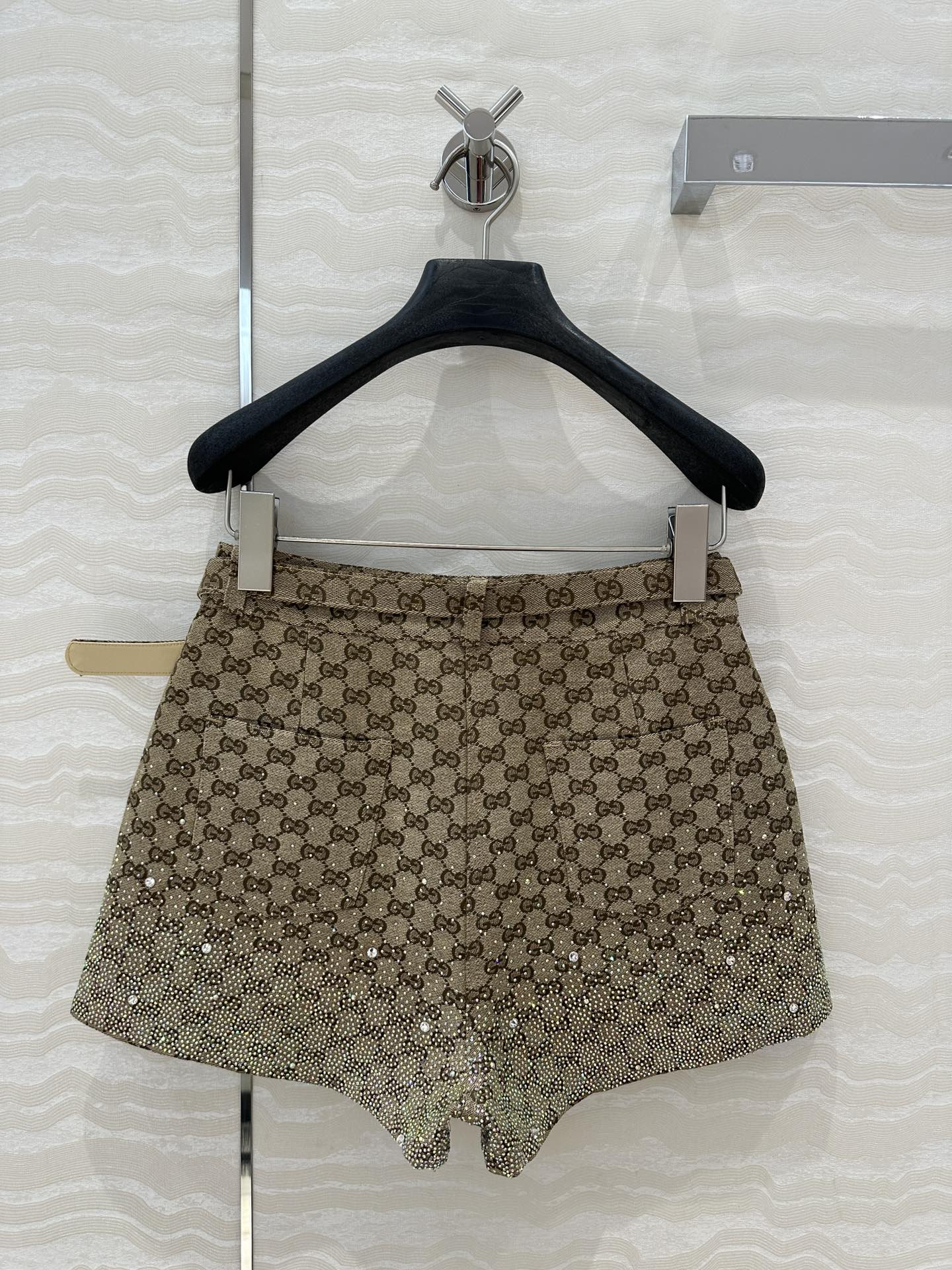 Gucci GG Letter Jacquard Woven Shorts Light Brown Polyester Fiber