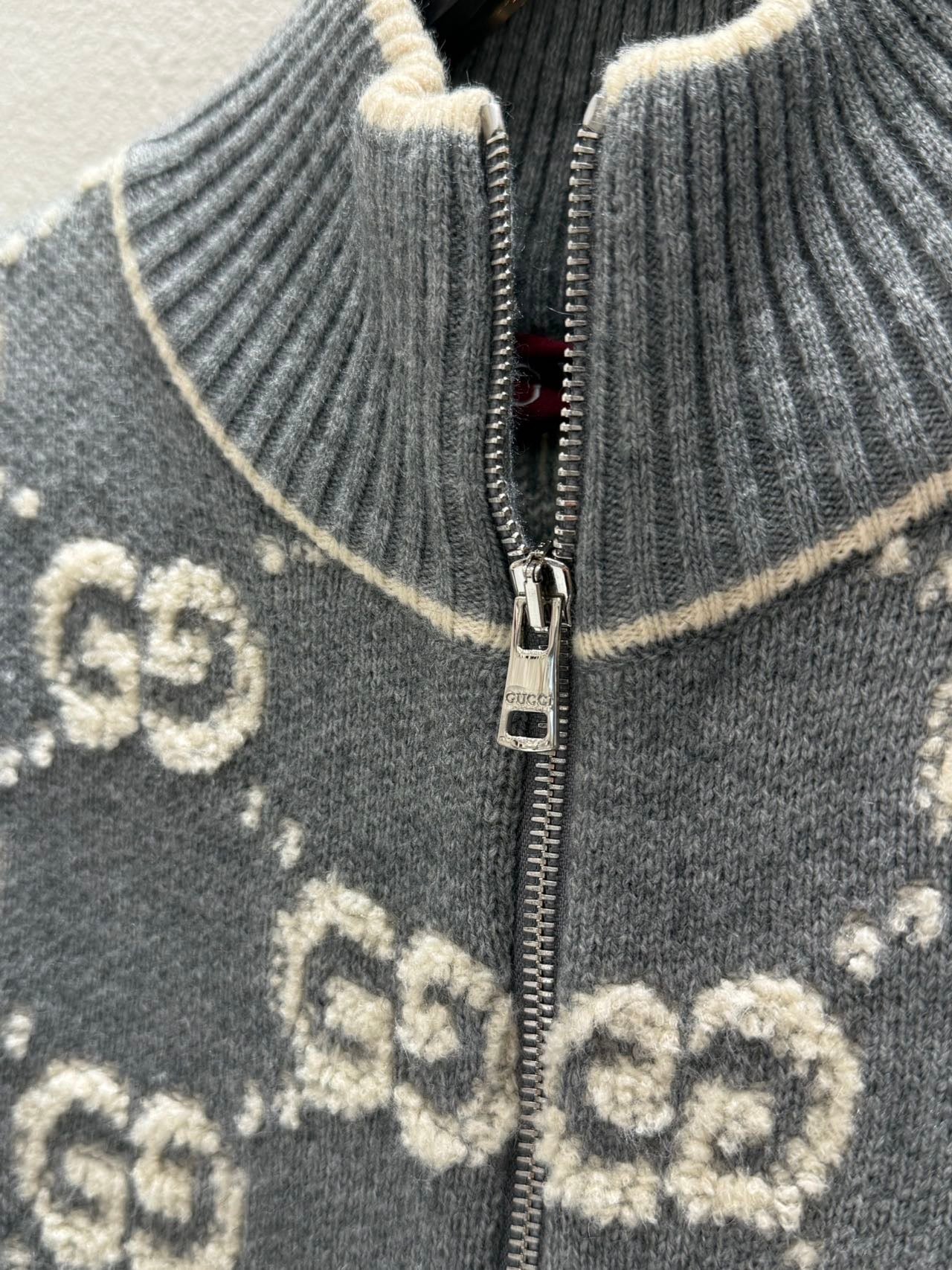 Gucci Zipper Cardigan Gray White Wool 304012