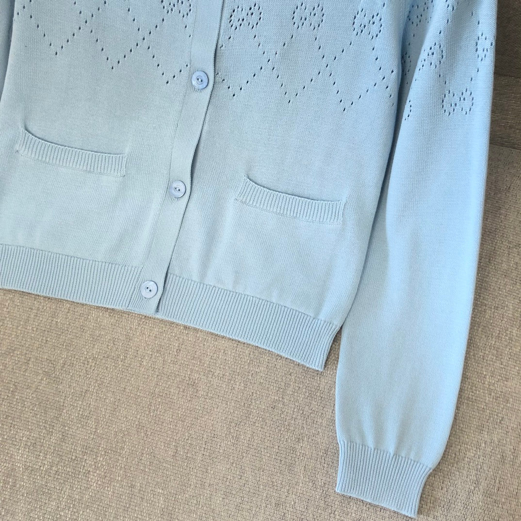 Gucci 25 Hollow Knitted Cardigan Avocado Green Polyester Fiber