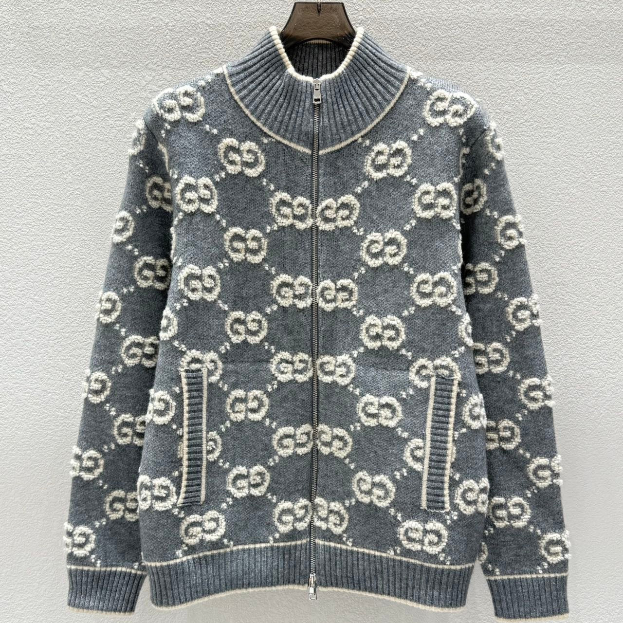 Gucci Knot Jacquard Knitted Cardigan Pink Wool