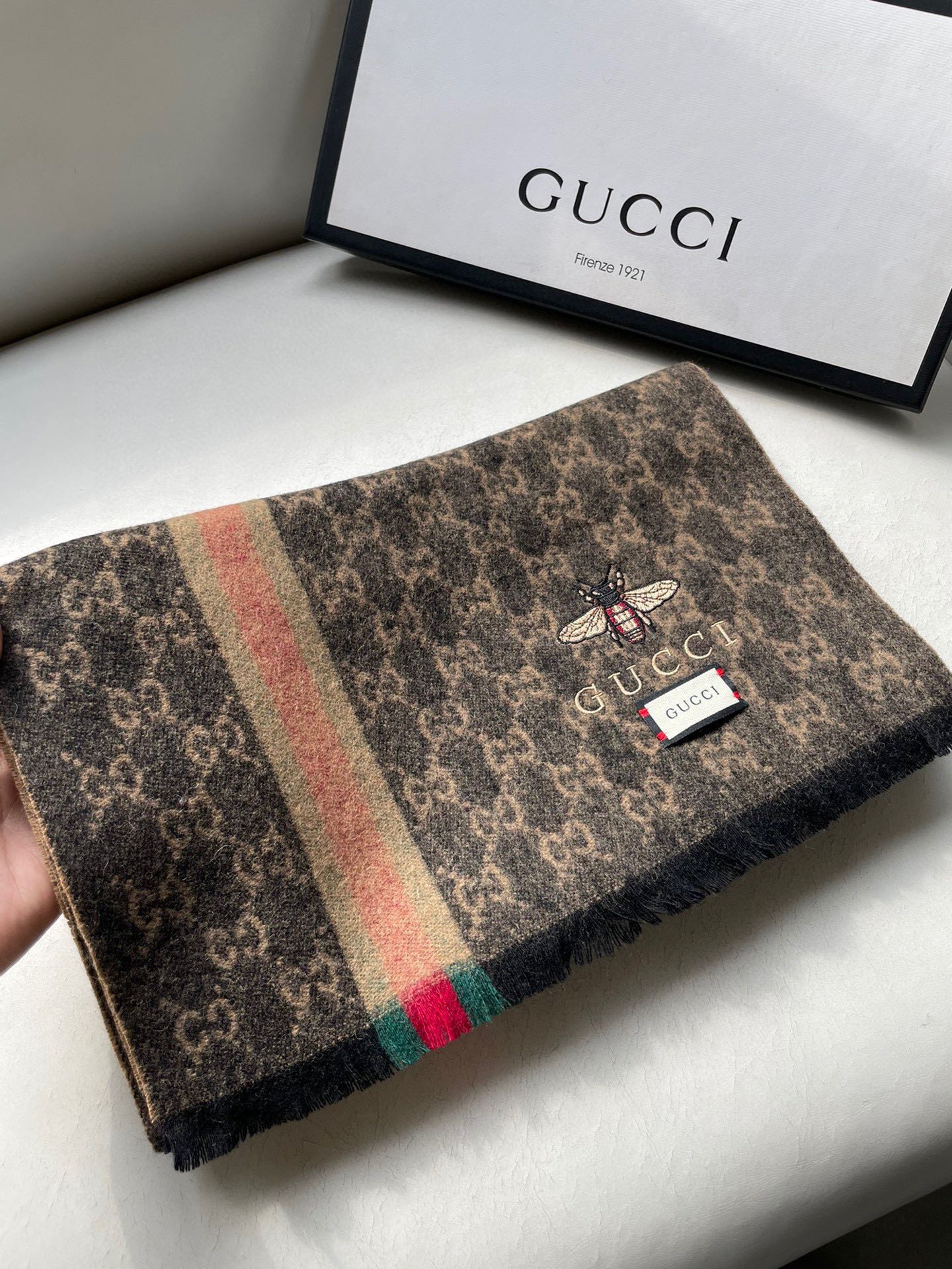 SCARF 180 CM IN BROWN MONOGRAM CASHMERE 402214
