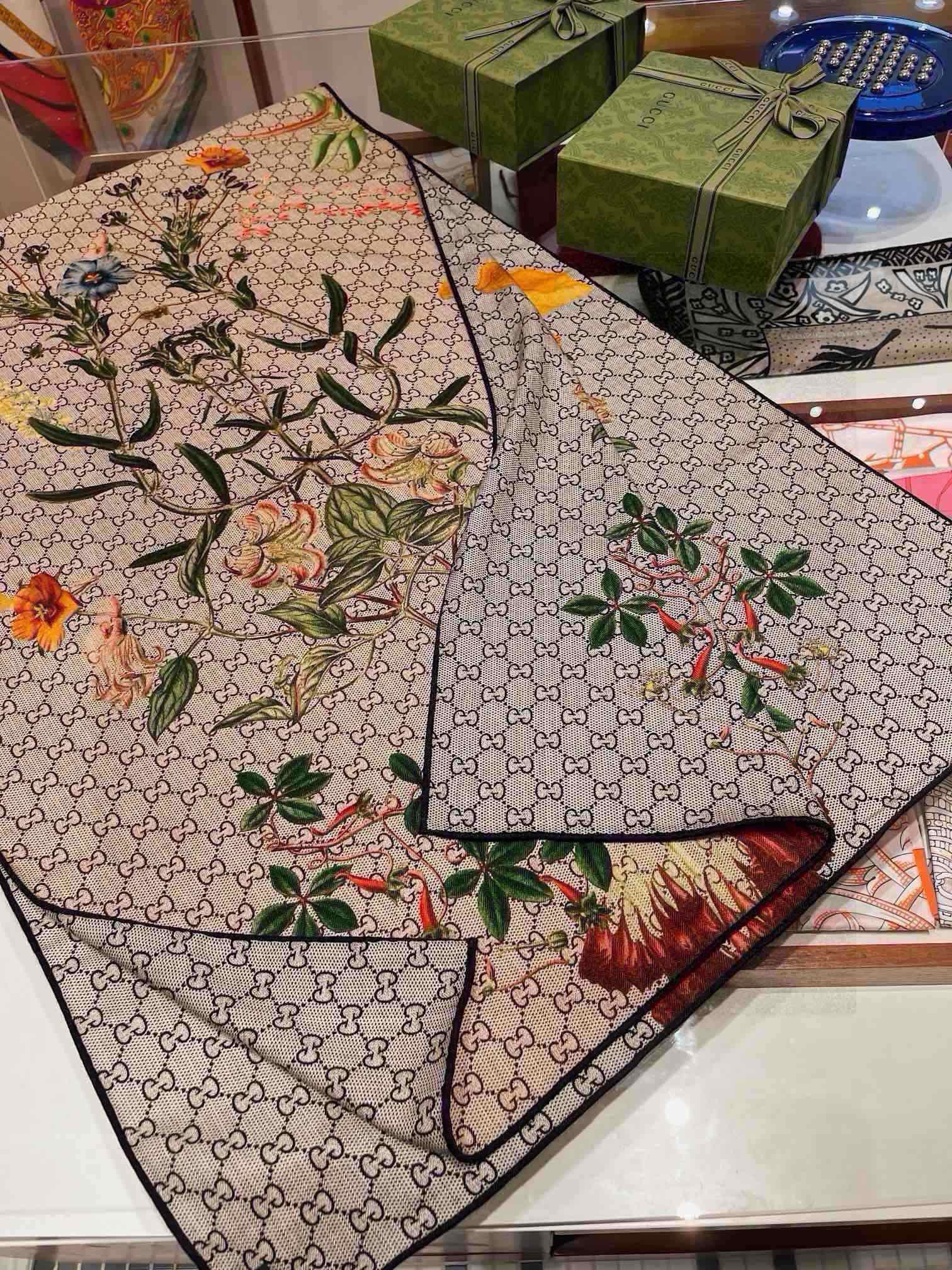 SCARF 180 CM IN KHAKI BROWN MONOGRAM CASHMERE 405276