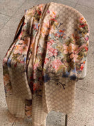 SCARF 200 CM IN MEDIUM BROWN CASHMERE WITH COLORFUL FLOWER 405254